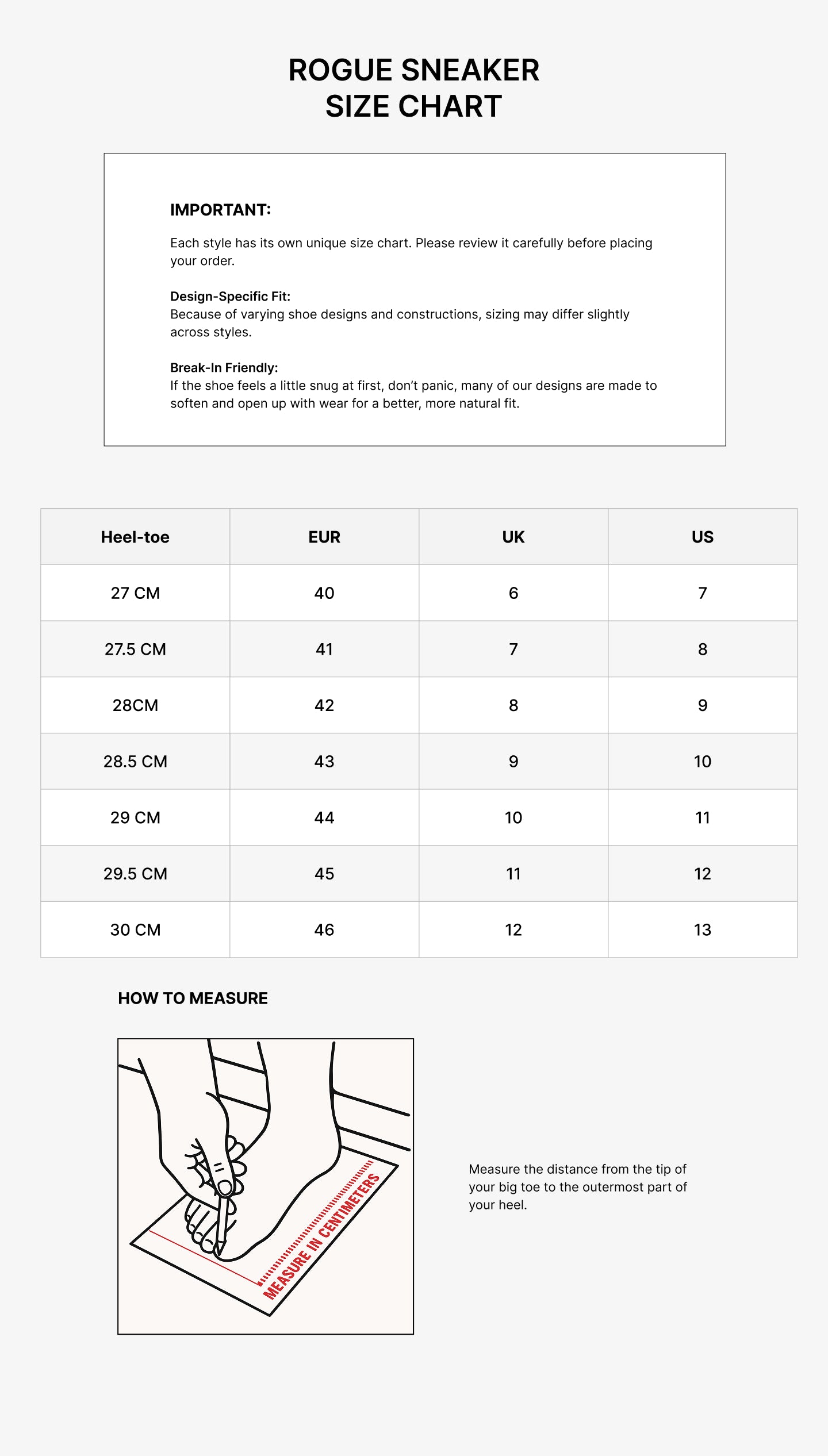 There’s precision in how Rogue Sneaker is built, clean lines, bold contrast, and just the right amount of weight. The upper layers premium vegan leather with soft-touch suede accents, giving the sneaker depth without over design. A rubber sole anchors the look, built to move with grip and purpose. Rogue feels sharp on the foot and sharper in motion, built for everyday wear, but never worn out.